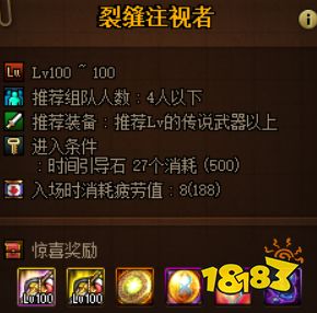 这两个全新地下城,其间一个叫裂缝注视者。进场条件为8点疲惫值和27个时刻引导石。该地下城和才智的引导很类似,相同能坠落才智结晶碎片、引导石、百级史诗和神话配备。不过不同的是,裂缝注视者会坠落终末的引导晶石(300个引导石)与才智的引导不相同。