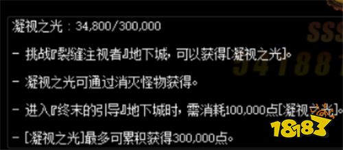 通关1次裂缝注视者能添加4800点注视之光(后文详解)。除此之外,每次进入裂缝注视者都有几率触发向下走的躲藏地下城,躲藏地下城会添加25004点注视之光。