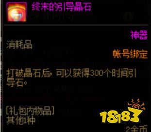 打败终末的引导地下城的领主后,必定会坠落少量的才智结晶碎片+1件百级史诗配备,还有必定概率坠落时刻引导石和终末的引导结晶。除此之外,在打败领主之后有必定概率呈现乱入的BOSS,打败不同的乱入BOSS就会坠落不同的配备(终末的引导的乱入必定会坠落神话配备或希洛克配备)